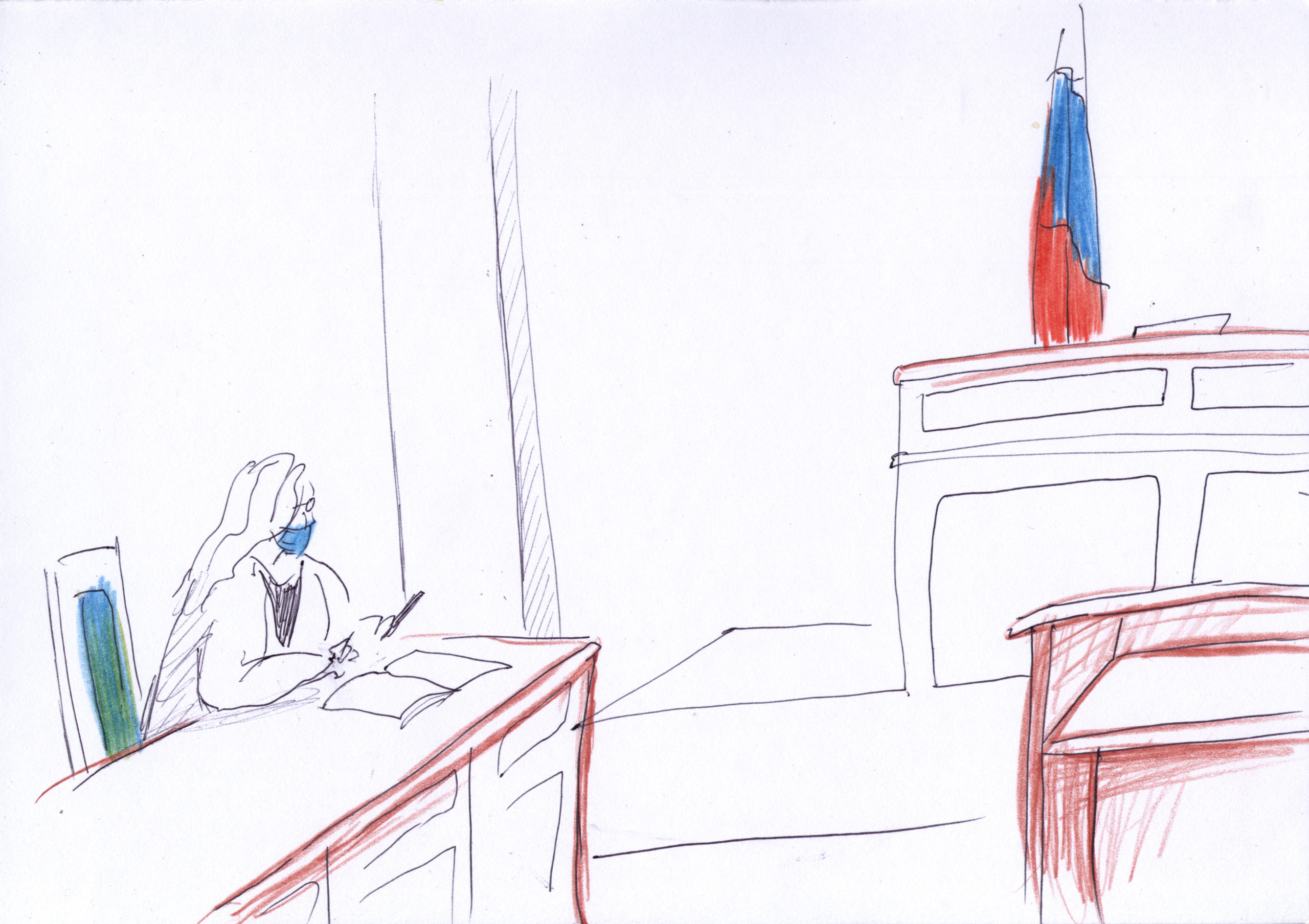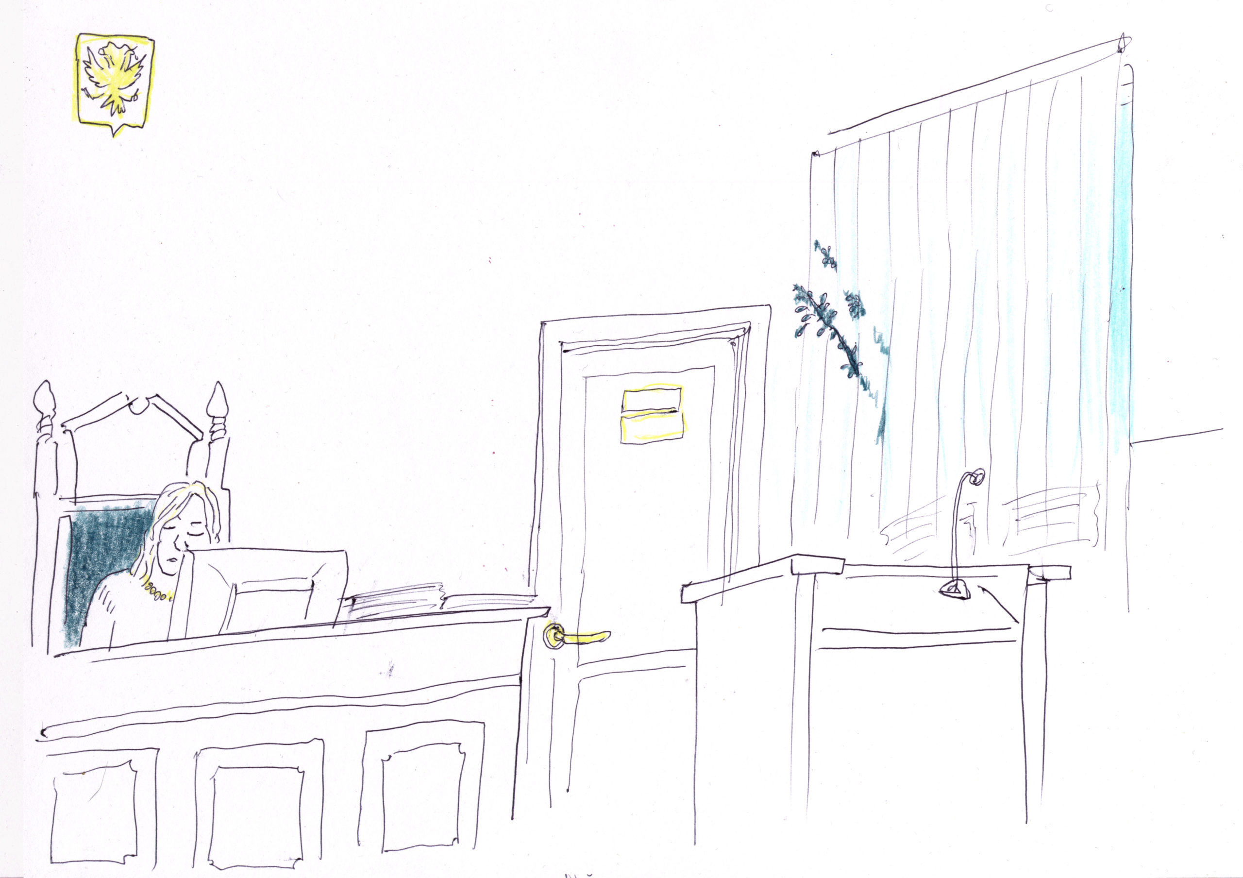 С сегодняшнего дня мы будем иллюстрировать заметки о судебных заседаниях зарисовками двух замечательных художниц: Анны Терешкиной и Кати Твейтан. В российских судах сложно получить разрешение на фото и видео съемку, а записывать от руки и рисовать можно, никого не спрашивая. Традиция судебных зарисовок зародилась в Великобритании и США, потому что в этих (и некоторых других странах) фото и видео съемка судебного процесса долгое время была запрещена, так как нарушает право подсудимого на справедливое судебное разбирательство. Мало того, в Великобритании даже зарисовки нельзя делать непосредственно в ходе судебного процесса, поэтому художники делают их по памяти.