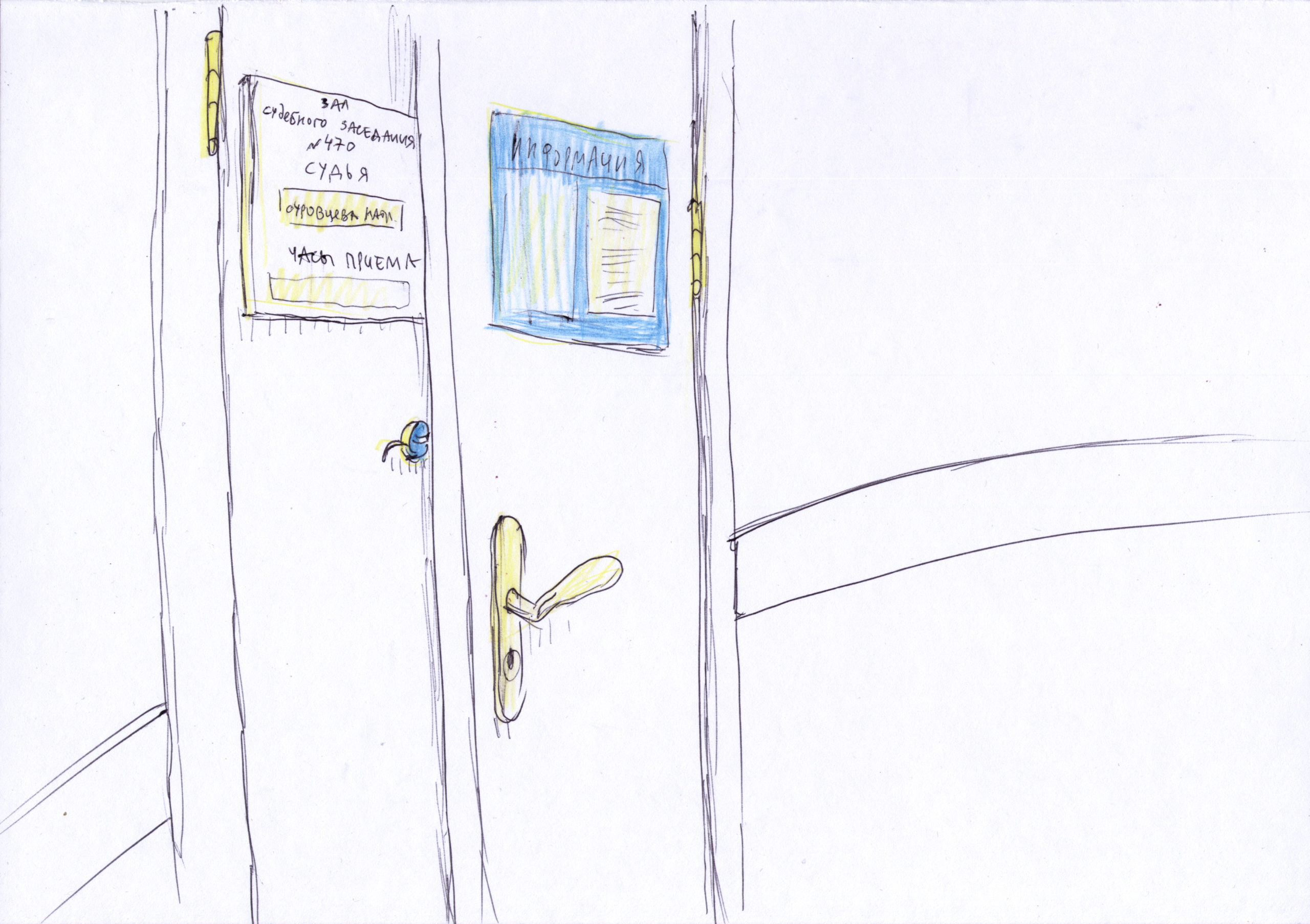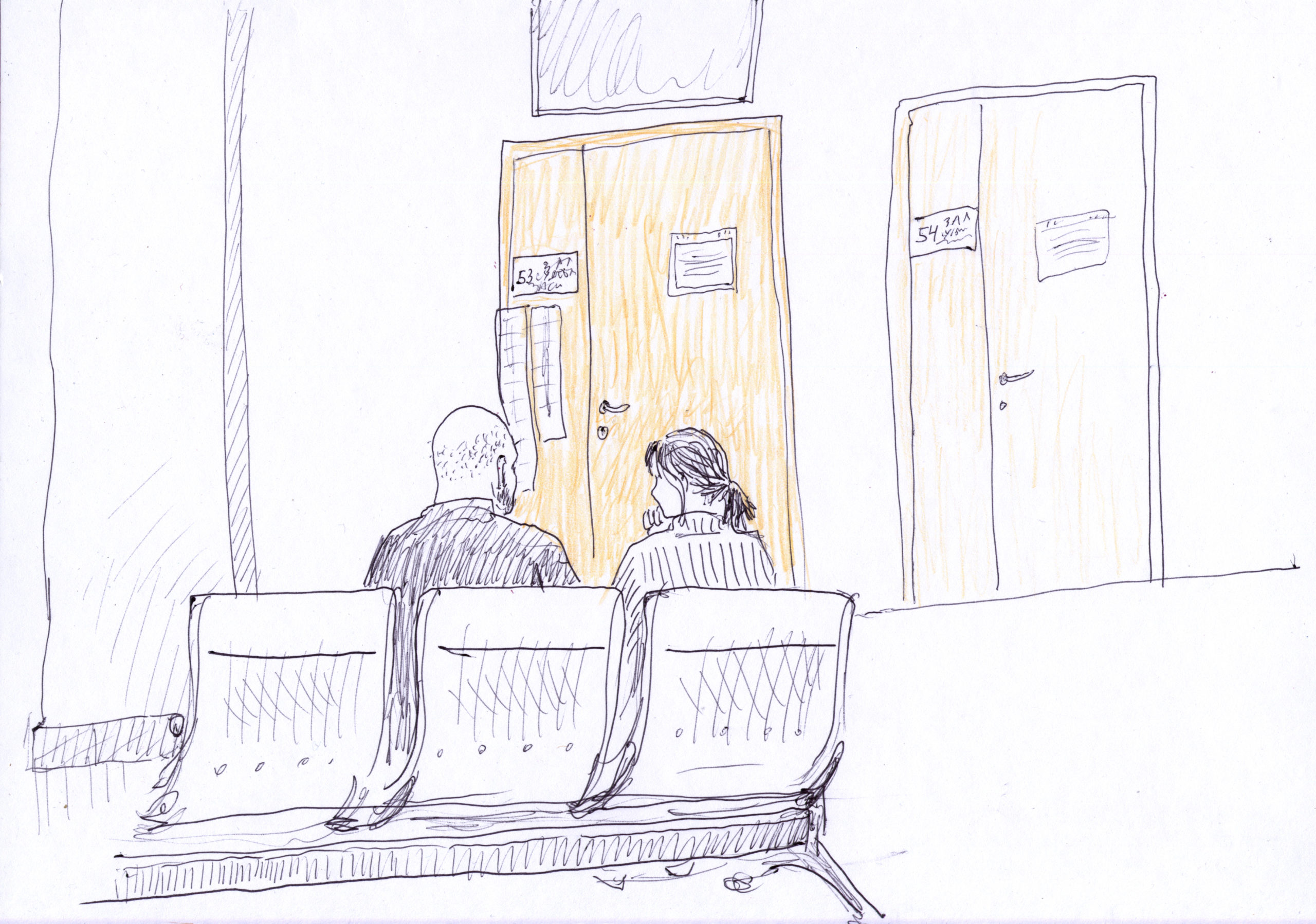 Кто был в судах, тот знает, что часто приходится долго ждать. Уже трижды наши художницы не сумели попасть в процесс, эти красочные рисунки были созданы во время этого ожидания.
